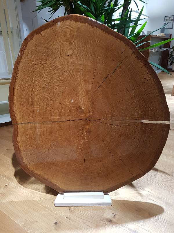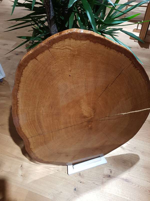 Eichen-Hirnholzplatte mit Epoxidharz überzogen als Beistelltisch oder Deko verwendbar.